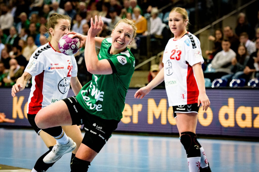 Auch deshalb hatte Coach Niels Bötel mit einem 50:50-Spiel gerechnet, das die 1.740 Zuschauerinnen und Zuschauer in der kleinen EWE Arena auch zunächst geboten bekamen. Toni Reinemann hatte nach eineinhalb Minuten den ersten Treffer der Partie markiert, danach konnte sich keines der beiden Teams wirklich absetzen. Das 9:7 der starken Leverkusenerin Mariana Ferreira Lopes (21. Minute) markierte die erste Zwei-Tore-Führung im gesamten Spiel, die der VfL bis zum Seitenwechsel aber konterte und mit einem 12:11 in die Halbzeitpause ging. „Wir haben uns insbesondere in der ersten Halbzeit schwergetan“, sagte VfL-Coach Niels Bötel nach der Begegnung. Unzufrieden war er mit dieser knappen Führung jedoch nicht, schließlich hatte sein Team sich so eine gute Ausgangslage für die zweiten 30 Minuten erarbeitet. „Wir hatten viele Chancen gut erspielt, sie aber zu selten genutzt. Dazu haben wir es Leverkusen in der Vorwärtsbewegung einfach gemacht, weil wir zu unaufmerksam waren, sie so zu freien Chancen gekommen sind. Und trotzdem stand dort die Führung zur Halbzeitpause.“